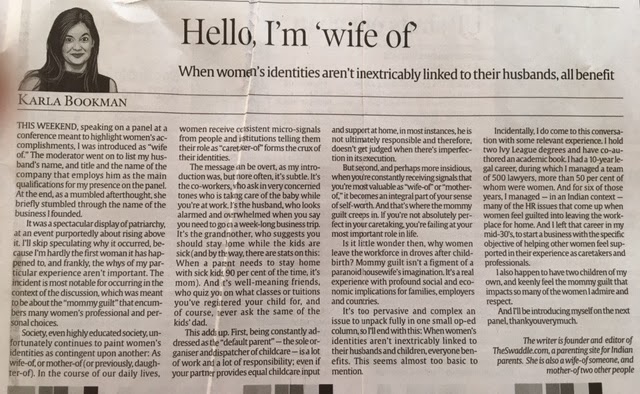April Fools’ Day seems the perfect day to write this blog. I am also inspired by today’s The Ideas Page article in the Indian Express by Karla Bookman, “Hello, I’m wife of”. Most of us ‘married’ women have experienced this regularly, being addressed as “wife of”! Most of us don’t think about it and many revel in being addressed as such.