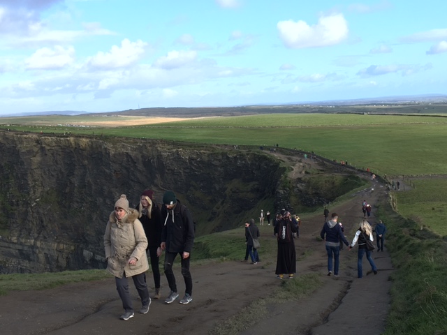 Among the rugged cliffs of The Burren the most famous and must see in Ireland is the Cliff of Moher. It is absolutely spectacular and can only be seen and felt. No photograph, and definitely not from an iPhone, can capture its breath taking beauty and wildness. I would rank it as high as the Niagara, and better for its wild feel. We were lucky to have a bright sunny day with relatively low speed winds. In spite of that it was very scary to see people go right up to the edge. I can imagine on a very windy rainy day it could be extremely dangerous.