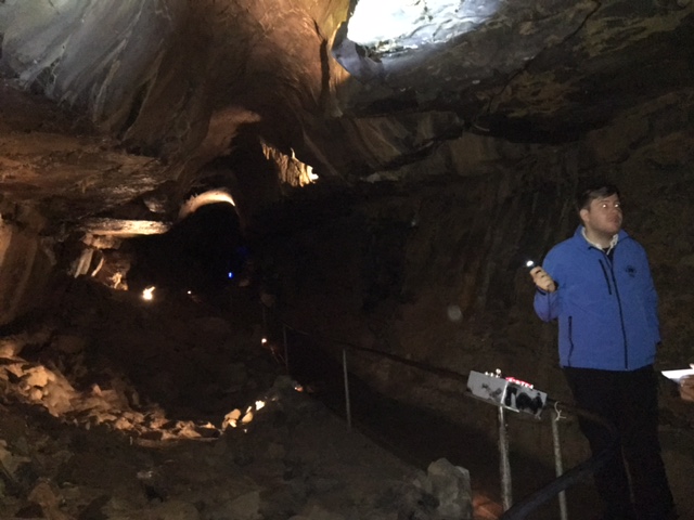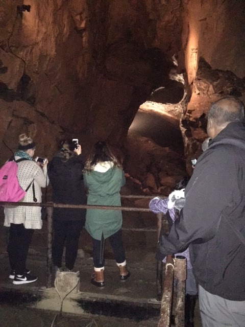 Glaciers are said to have covered and expanded in this area since the Iceage and later. In the Iceage all of Ireland, Britain and Europe were one mass of land. Ireland and Britain shifted apart later and Ireland continues to move North!! Preexisting weakness lead to deep fissures in rocks. According to our guide in this area and all of Ireland many rivers run under the ground. The rock karstification facilitates drainage. The result is the formation of numerous caves through which the water flows. One of the famous and preserved on is called the Aillwee Caves. We entered these caves that contain a river, waterfalls, stalactites (drippings from above) and stalagmites (drip formations on the floor).