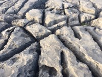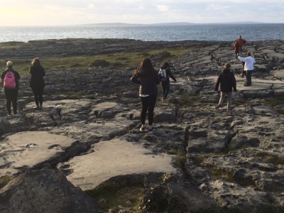 The Burren is formed by thick layers of sedimentary rock consisting mainly of limestone (karst). It is said to have been formed by years of sedimentation of fossils of corals and various form of shells and sealife. This formation of exposed limestone terrain with jagged cliffs is seen all along the West coast south of Galway. Our Tour guide told us that it looked like the surface of the moon and that Neil Armstrong never went to the Moon. He was photographed here!! So I landed on the moon too!!