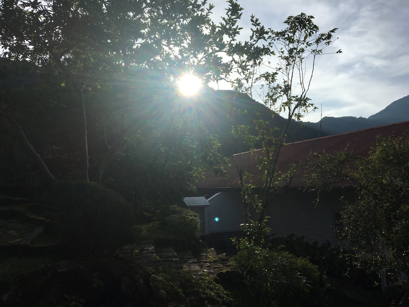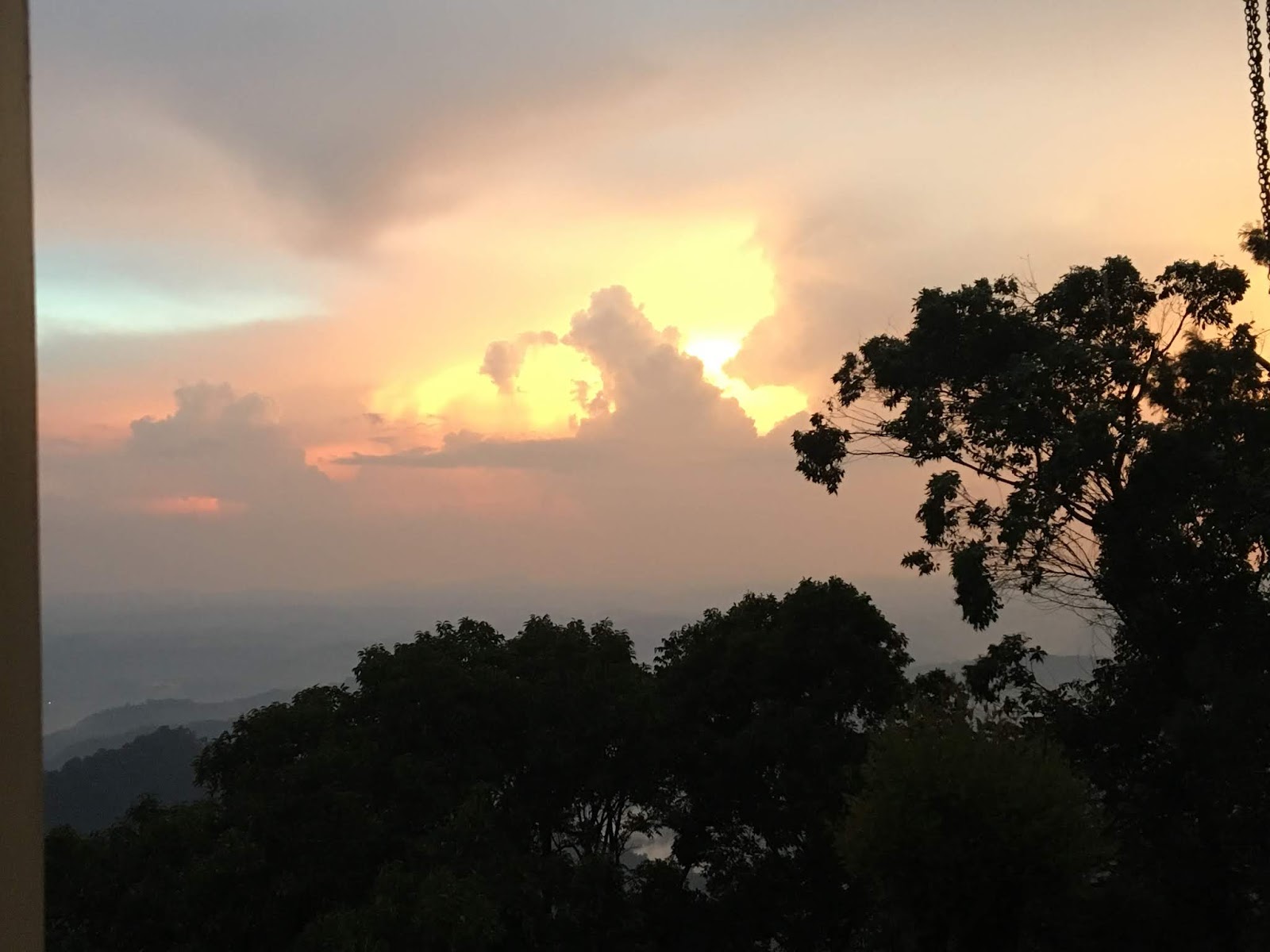 Sunrise and sunset over the estate had its own charm. One morning we were up and about on the big boulder view point all set to watch the sunrise and of course the mist and clouds played spoil sport. My luck with sunrises is not the greatest! The next morning I was able to capture the rising sun over the hills. In the evening the play of the setting sun and the clouds created changing shapes in the sky. Once it clearly looked like a rabbit, but by the time I got to it, this is what I got. Use your imagination!!