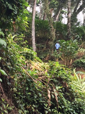 The ground around one of the bushes of cardamom was dug up. Antal pointed out that this was the work of the wild boar that lived in the forest. Unfortunately we did not meet up with him!