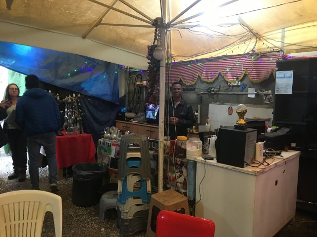 Next we visited a Sudanese restaurant again with no name. This was however, in an established shop and not in a tent as our previous Eritrean restaurant. The Sudanese refugees have had a sad past in a country faced with genocide in Darfur since 2003. The Sudanese libertarian movement fought the government and the latter began ethnic cleansing of Non-Arab Darfur population. Hundreds of people lost their lives. Refugees escaped across the desert of Egypt. In this conflict ridden region, Israel is considered the only democracy. In 2006 Israel let in the refugees and gave them tickets to go to Tel Aviv, but no further arrangements were made for them. They arrived and settled in squatter settlements in the city. Later some efforts were made by the Israeli government and international NGOs to help settle these refugees. They have still not been given legal status, but are allowed to work informally.