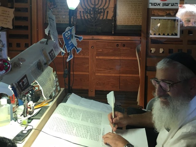| Transcribing the Jewish scriptures with Menorah in the background, Masada |