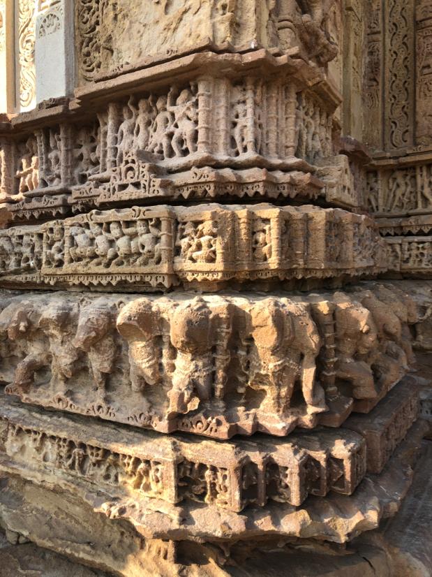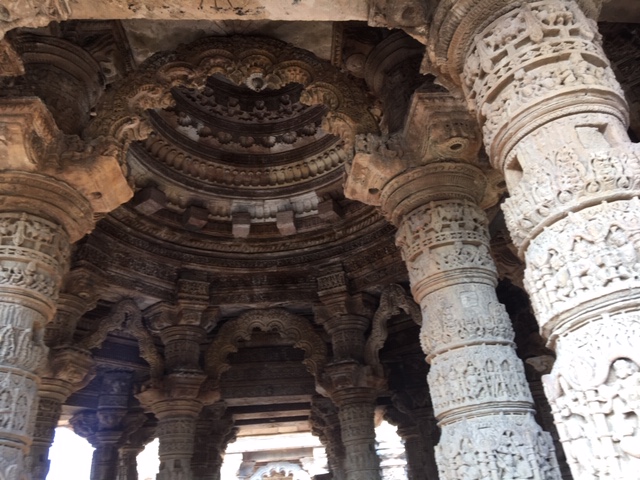The Gudhamandapa was a much more interesting structure than the Shrine. It had intricate carvings outside. The inside had a series of pillars, all of which had intricate carvings of Surya and different aspects of the Sun in different months. To the untrained eye, I must say we were unable to distinguish these images.