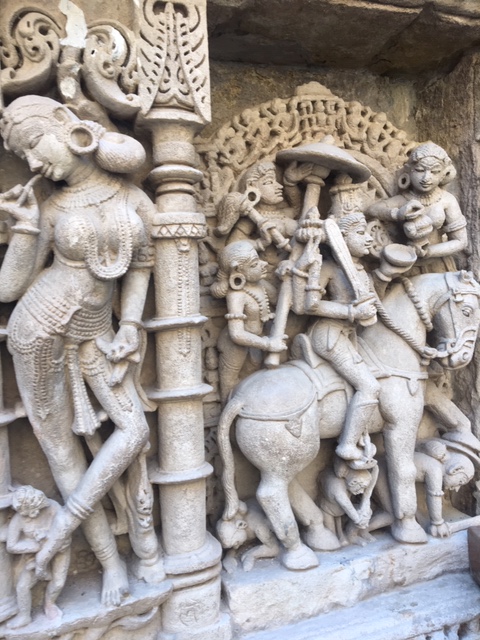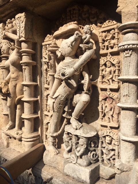 Various avatars of Lord Vishnu were sculpted on the side walls as one walked down the steps of the stepwell. Mythology depicts Kalki, considered the last avatar, as coming on a white horse. There were sculptures of Kalki on a horse and Varaha, the boar avatar of Lord Vishnu.