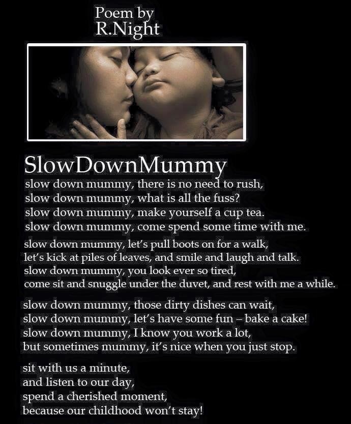 A beautiful poem by R Night! Slow Down Mummy!