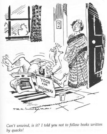 If you are able to manage most of these asanas and pranayamas then you are all set to become a polished product as in the glazed ॐ pottery of Barin Das! Just make sure you do not end up like the man in R.K. Laxman cartoon below. Completely twisted and unable to unlock himself!!