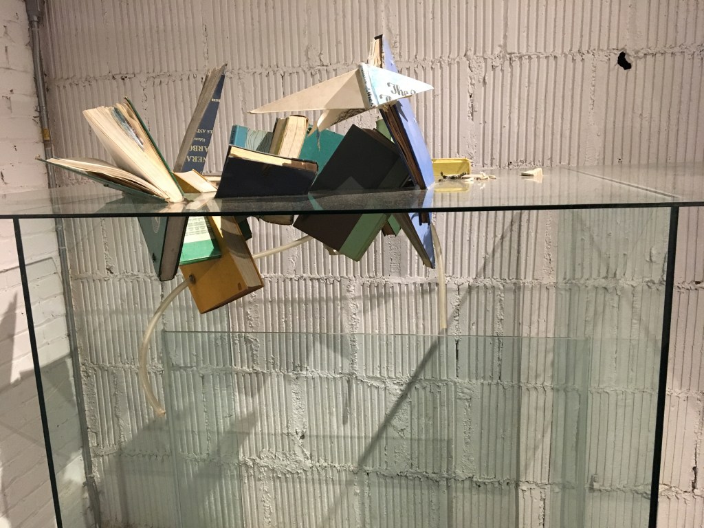 At The Mattress Factory we saw this strange installation by Latham, a collection of books placed haphazardly. The next installation was the books falling down! Was not quite able to fathom this. For us academics, books are sacred, why would place them haphazardly and worse, let them fall? But now after reading about Latham’s other ‘event-based’ art objects, this one is definitely less weird!