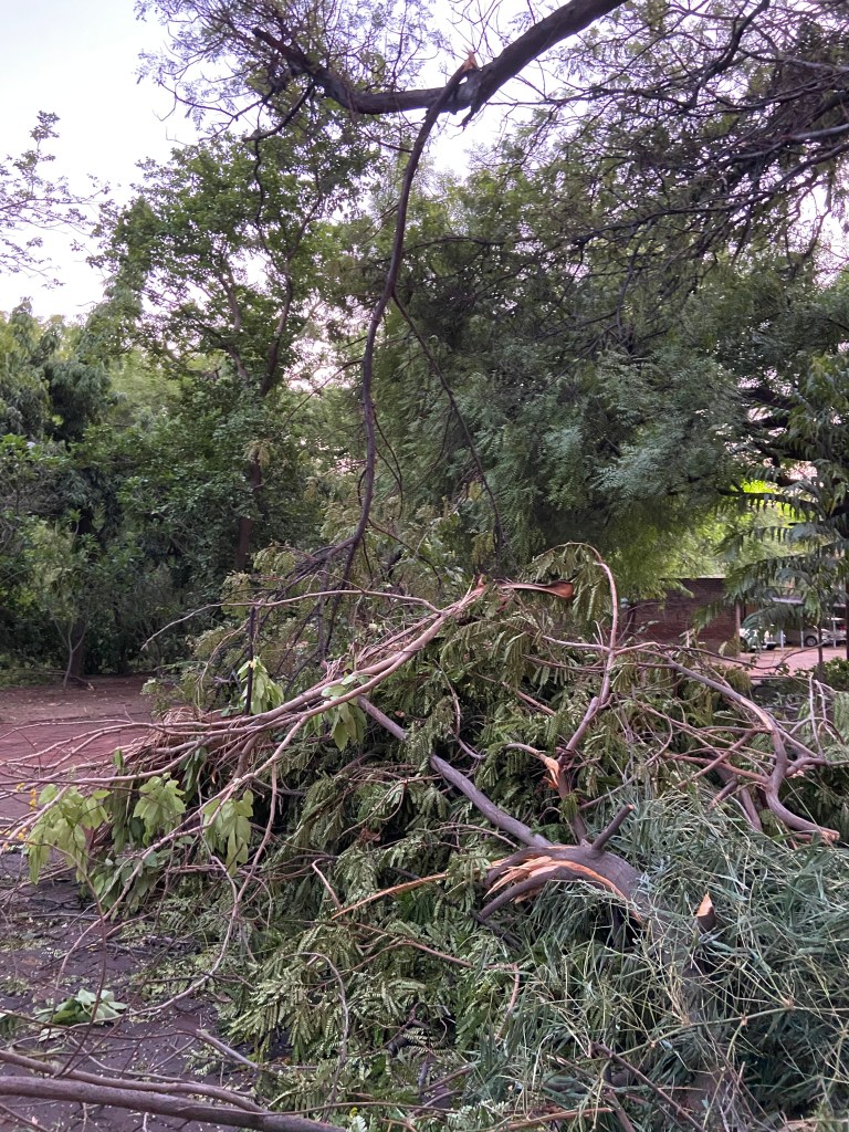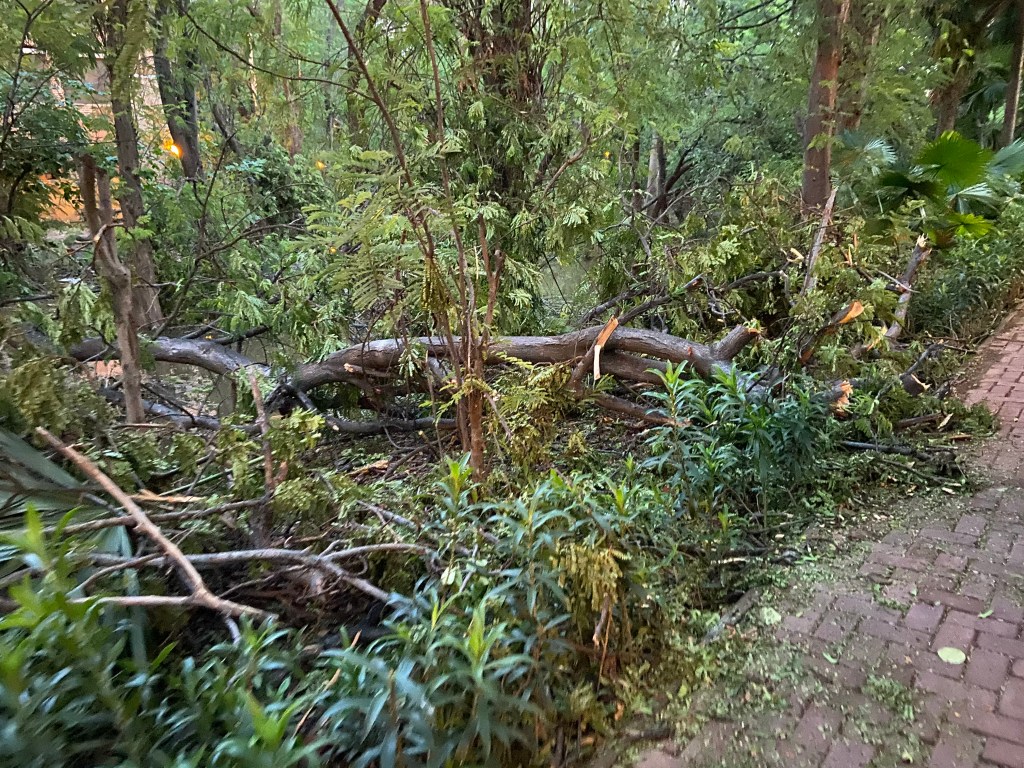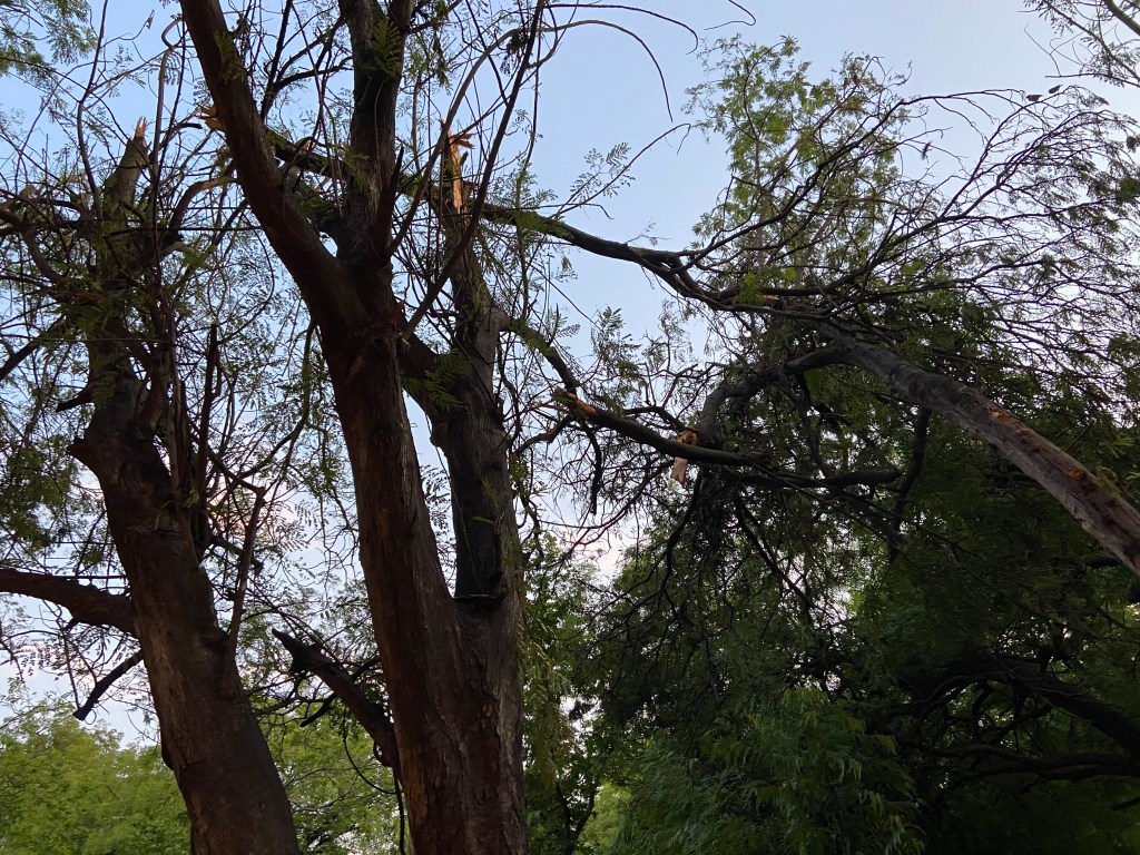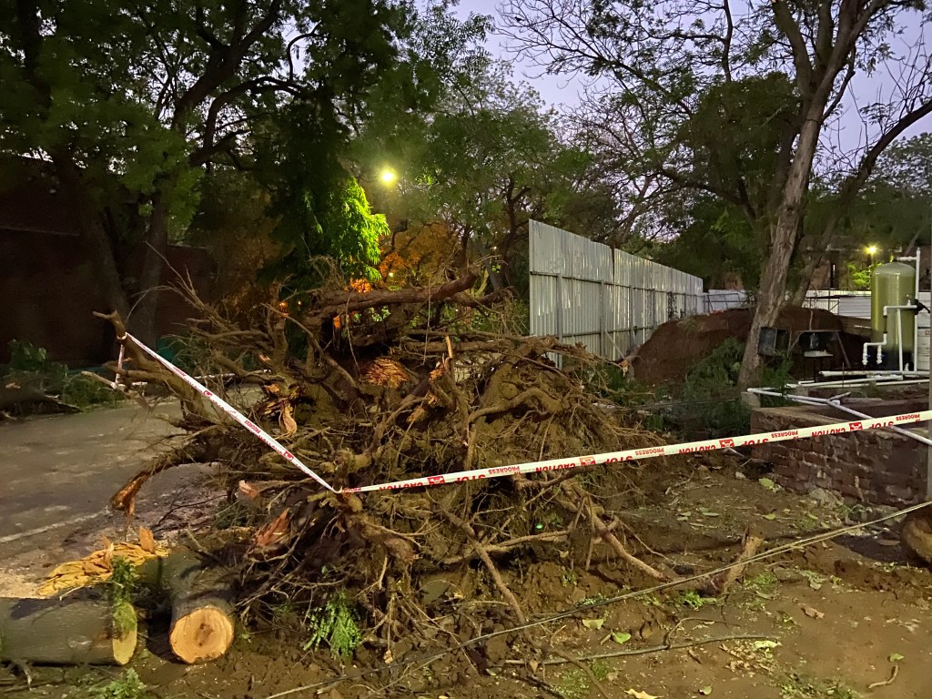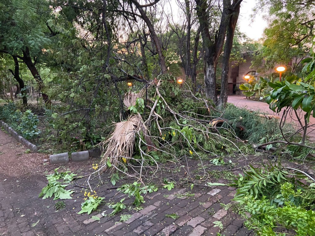 Tauktae had taken its toll of the trees. A large number of old trees had fallen on the campus. The clearing squad was already on the job since early morning and we saw the debris scattered all over.