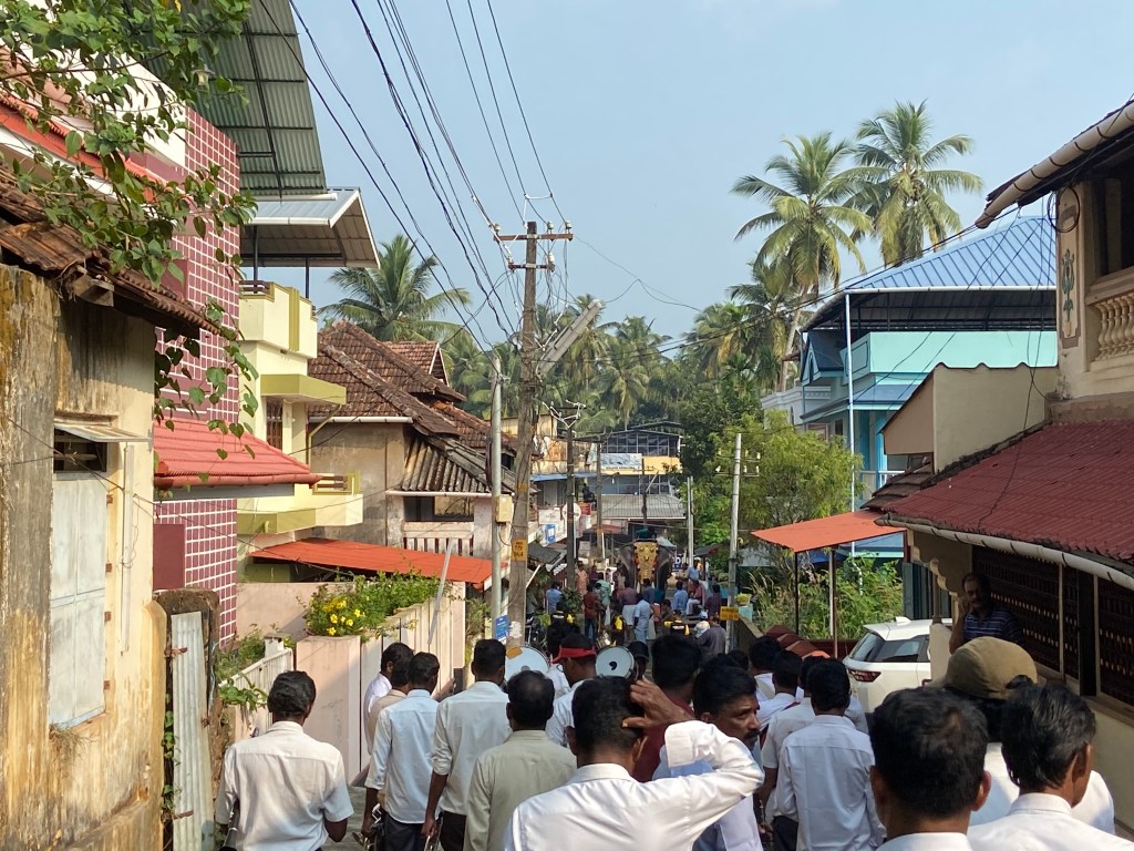 We were lucky to arrive in town when the church at the bottom of the hill of the street, Puthenpetta Angadi, was celebrating its church festival. Kunnamkulam town celebrates weddings, church festivals and all events with a procession of elephants and ‘chenda’ (traditional drums). And there were elephants galore around town that day and drums, not the traditional ‘chenda’ though.