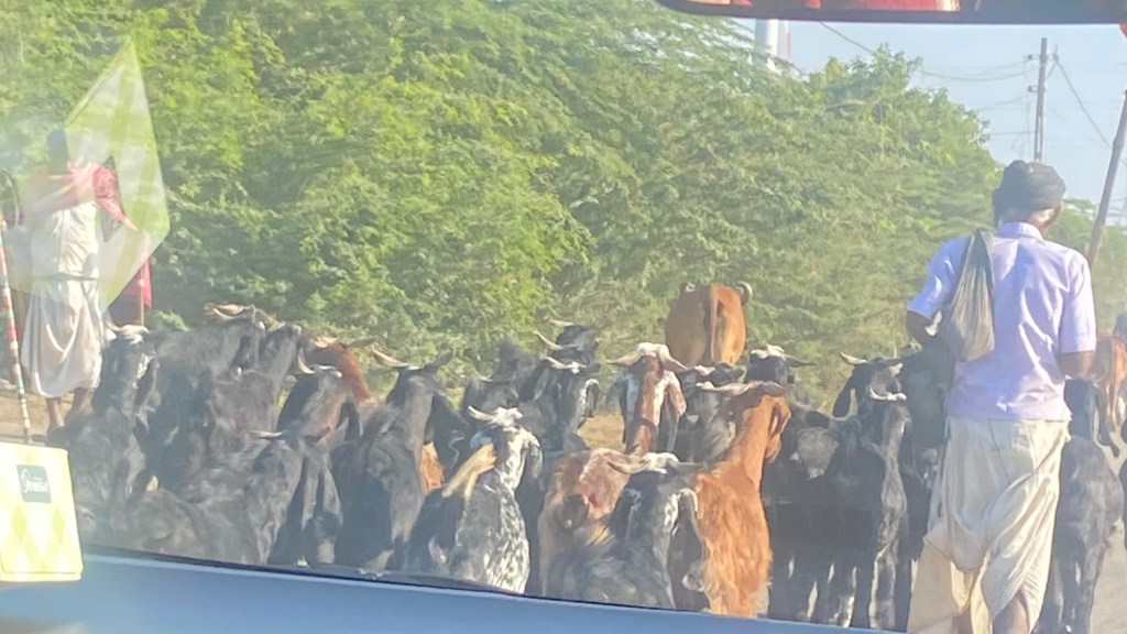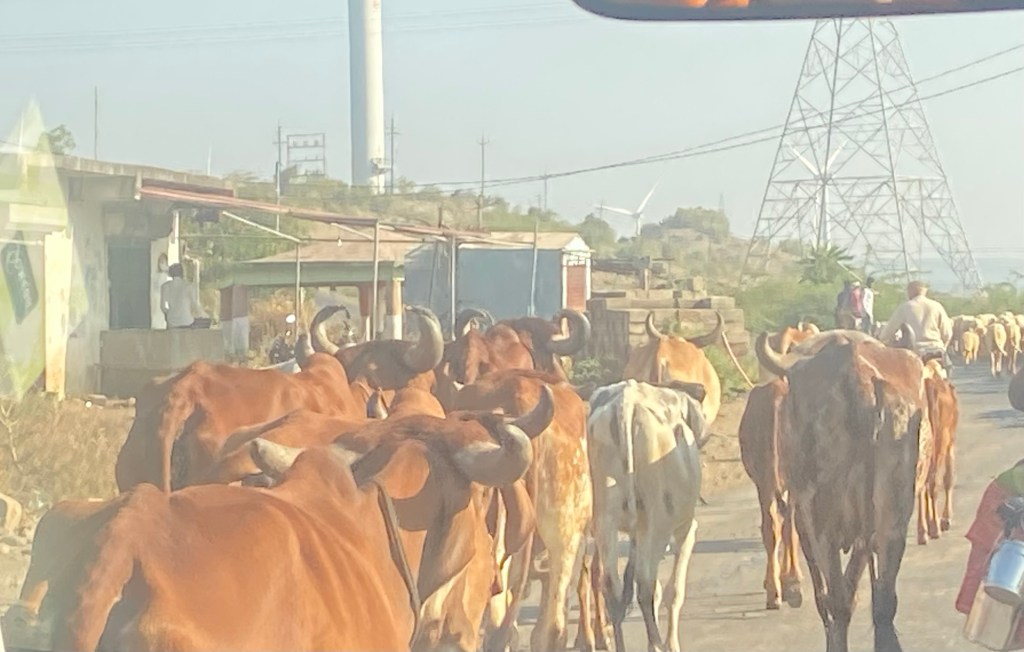 We had an enriching visit to understand sustainable agricultural practices in Amreli district, where the Friends of Women’s World Banking, Ahmedabad is working with women farmers. On the way we met cows and goats being herded to the grass lands! We also saw a large number of windmills, a feature of coastal Gujarat’s renewable energy program.